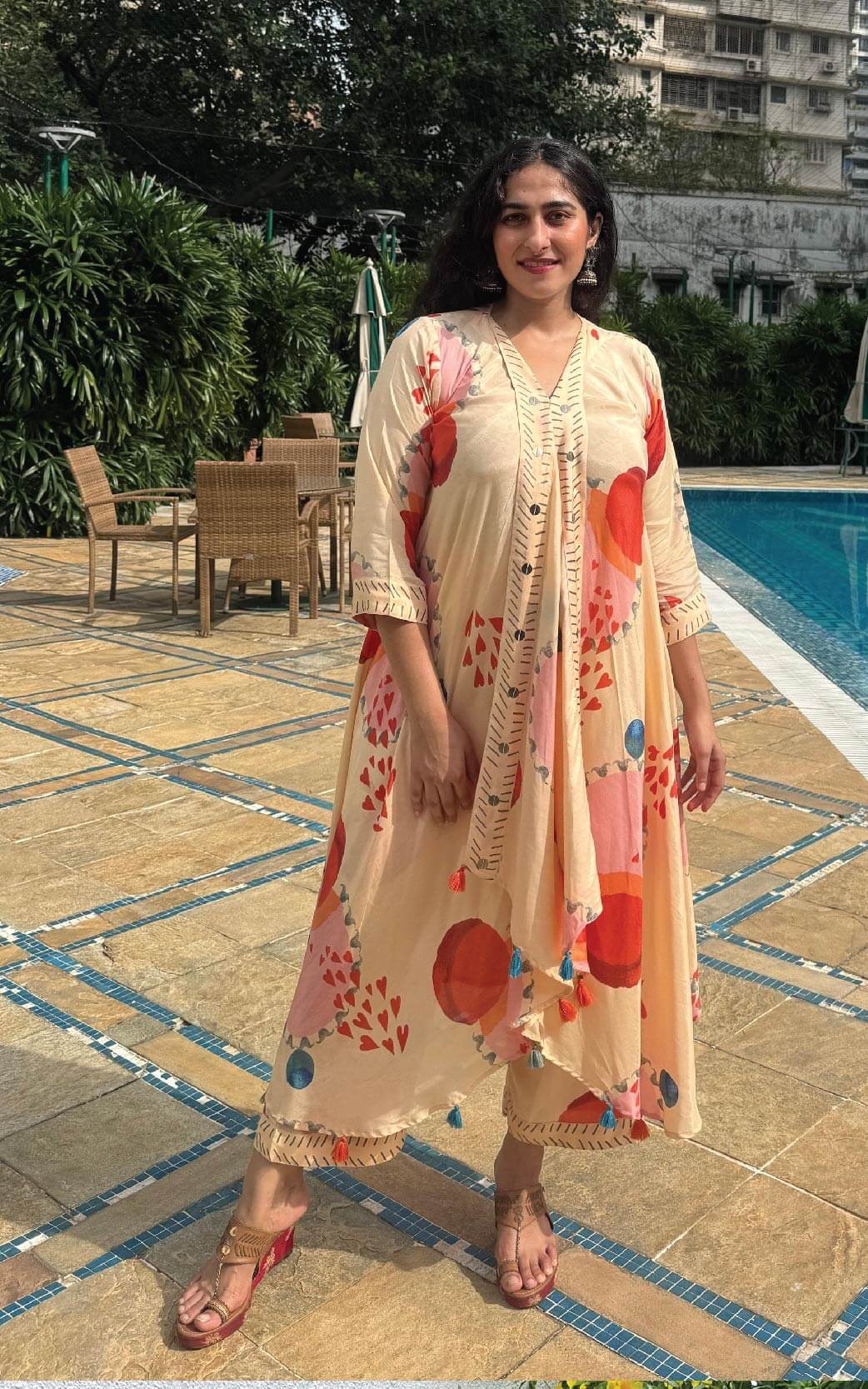 Model:- the model is 5 feet 7 inches tall and for this outfit she is wearing size L